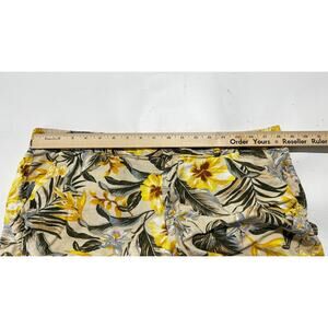 Old Navy Everyday Shorts Women 16 Beige Yellow Floral Linen Blend Mid Rise