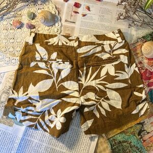 Old Navy Everyday short, white tropical print on dark tan linen/rayon blend, size 0. Great condition.