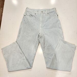 Old Navy Extra High Rise Jeans Women's 4 Sky Hi Straight Blue Striped Button Fly