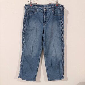 Old Navy Extra High Rise Sky-Hi Wide Leg Jeans with Braiding size 18p