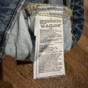 The hem of the left leg has some fraying, and there is also some fraying up on the waist band near the button fly. I am not sure if that was part of the original design or if it's wear. There is also some color variation on the back right thigh where it seems lighter. Please see photos for details. Otherwise, I don't see any flaws.