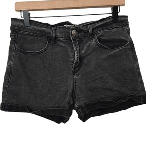 Chic faded black jean shorts. Perfect for casual wear. Comfortable and stylish.
