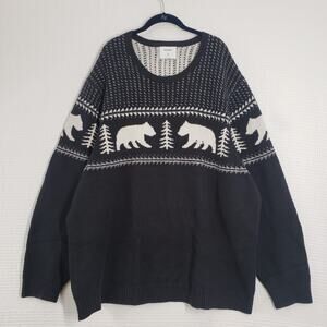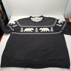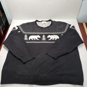 Old Navy Fair Isle Crew Neck Sweater Mens XXXL Tall Black White Bear Knit Cozy