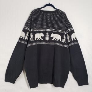Black Fair Isle Bear Crew Neck Sweater Mens XXXL Tall