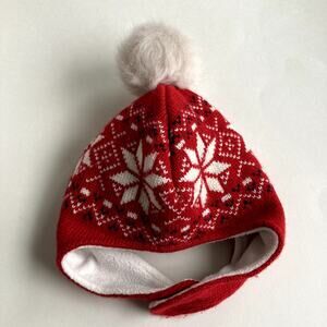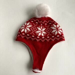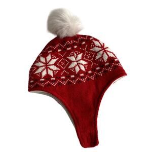 Old Navy Fair Isle Pom-Pom Trapper Hat - Red White - Large `