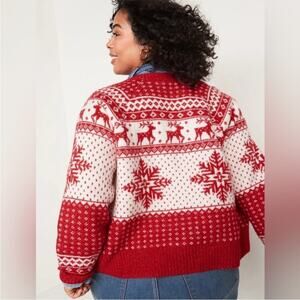 Old Navy Fair Isle Reindeer Snowflake Knit Christmas Cardigan Sweater Size M