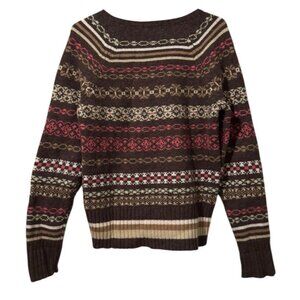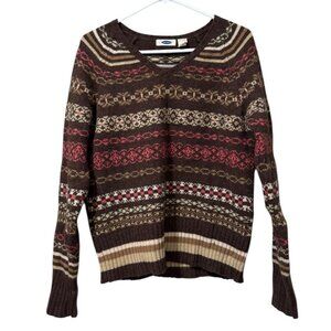 Old Navy Fair Isle Sweater V Neck Pullover Lambswool Sz Large Holiday Christmas