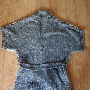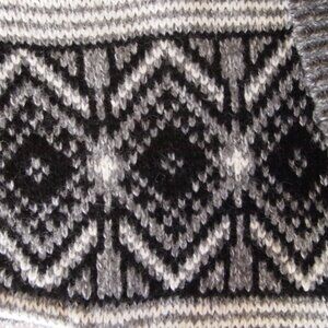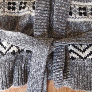 Soft and cozy Old Navy Fair Isle tie waist cardigan, size Large. This chunky cardigan is guaranteed to keep you warm on those cold days. Gorgeous color pattern of gray, black and white. In excellent condition, no signs of wear!