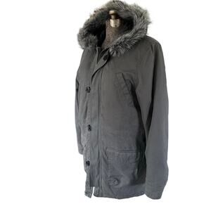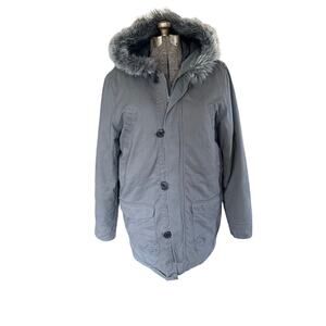 Old Navy Faux Fur Women's L Full Zip/ Botton Hooded Winter Coat Jacket Chore