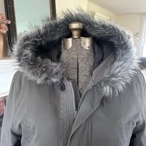 Old Navy Faux Fur Women's Size L Full Zip/ Botton Hooded Winter Coat Jacket.