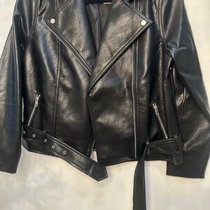 Old Navy Faux-Leather Belted Biker Jacket – Small Petite NWT