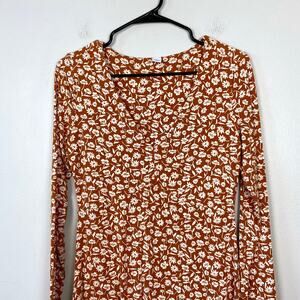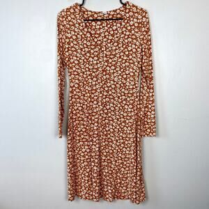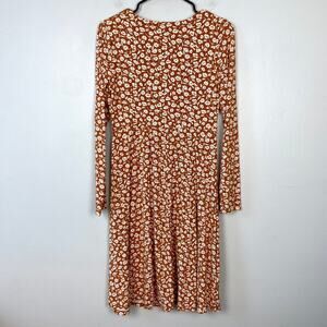 Old Navy Fit & Flare Empire-Waist Jersey Dress Orange Floral Long Sleeve Medium