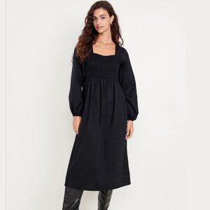 Old Navy Fit & Flare Long Sleeve Midi Dress Sweetheart Neck Black (M) NWT!