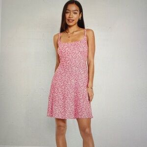 Old Navy Fit & Flare Mini Dress Womens Pink Linen blend Floral Cami Y2K XL