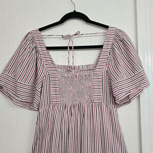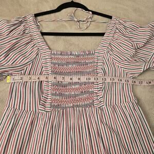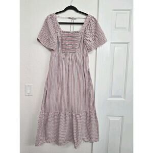 Old Navy Fit & Flare Striped Midi Dress S Short-Sleeve Tie-Back Pockets Sundress