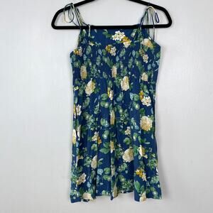 Old Navy Fit & Flare Tie-Strap Mini Dress Blue Floral Sundress Spring Medium Petite