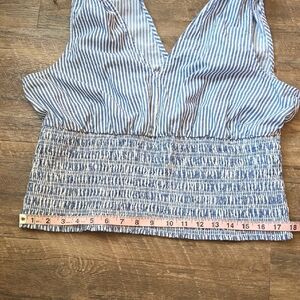 Old Navy Fitted Blue and White Striped Smocked Tie Shoulder Blouse Size Large