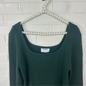 Old Navy Fitted Cropped Square-Neck Rib-Knit Green Sweater Size L