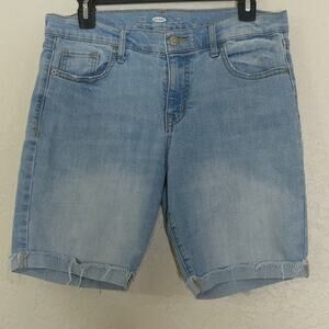 Old Navy fitted light wash blue jeans shorts with cuffed hems. Size 10 regular. Please see approximate measurements below.