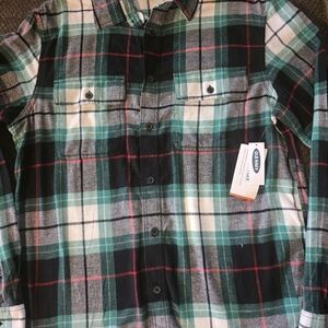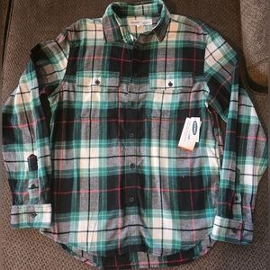 Old Navy Flannel Flex Shirt Women M Plaid Mixed Print Button Up Long Sleeve New