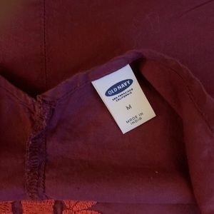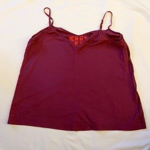 Old Navy flare fit spaghetti strap shirt, maroon with orange/coral stitch design