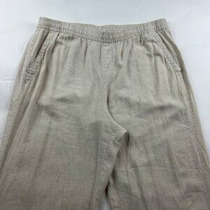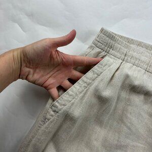 Excellent used condition, linen rayon blend pants have no significant signs of natural wear or overuse. 4 functional pockets, full elastic waist, interior front drawstring ties. Size Extra Large, please reference measurements for sizing & fit inquiries.