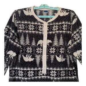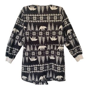 Old Navy Fleece PJs SZ M Women's Romper Black White One Piece Christmas Winter