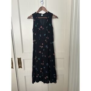 Old Navy Floral Boho Peasant Midi Dress Womens Size Medium Black Hippie