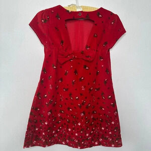 Old Navy Floral Bow Back Red Velvet Holiday Toddler Dress Size 5T
