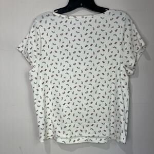 Old Navy Floral Button Front Ribbed Tee White Ditsy Print Sz XL
