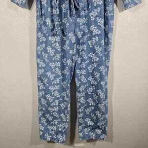 Old Navy Floral Chambray Jumpsuit Women Large Blue Tie Belt Long Sleeve Boho Hip