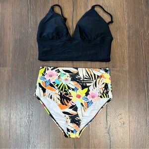 Old Navy Floral High-Waisted Bikini Set - Black and Multicolor SZ MED/LG