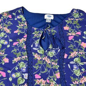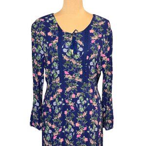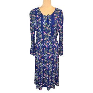 Old Navy Floral Midi Dress Sz.XL Blue Lace Ruffle Tussels Boho Feminine Fairy