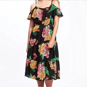Old Navy Cold Shoulder Floral Print Dress. Adjustable straps, Elastic Waist, Approx measurements Pit to Pit 18", Length