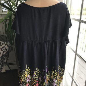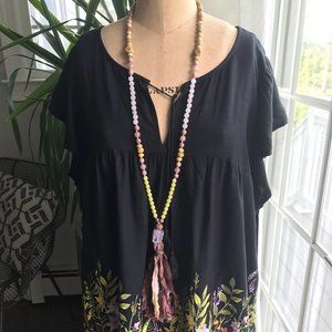 Old Navy Brand Floral Top, Black Short Sleeve, Tassels, Pink and Green Flowers, V-Neck, (Kids Size XXL)