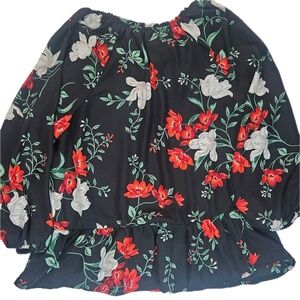 Old Navy Floral Top Womens XL Black Red Peplum Style Smart Casual Office Blouse
