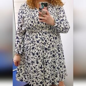Old Navy Floral-Print Waist-Defined Bracelet-Sleeve Midi Dress XL