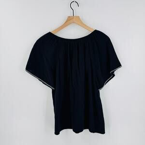 Old Navy Flutter Sleeve Cotton Blouse Black Embroidered Flowy Size L Large