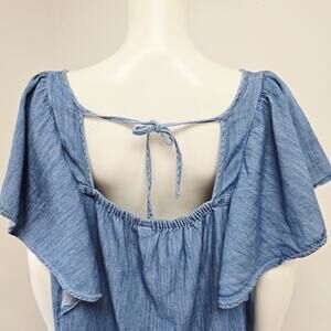 Old Navy Flutter Sleeve Top Size XL Chambray Jean Blue Tie Back Womens NWT