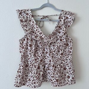 Old Navy Flutter-Sleeve Floral V-Neck Tie-Back Top L
