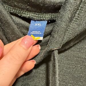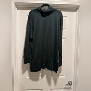 Comfortable forest green turtleneck pullover with kangaroo pocket. Long tunic makes it perfect to pair with leggings.