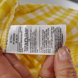 Old Navy Front Button Up Yellow Check Gingham Top Short Sleeve Size M Tall