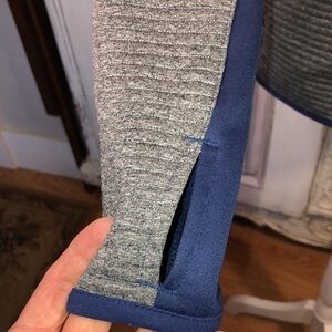 Navy with Gray inserts front zip pockets