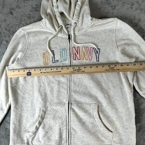 Old Navy Full Zip Up Hoodie Drawstring Hood Women Large Spell Out Soft Cozy READ