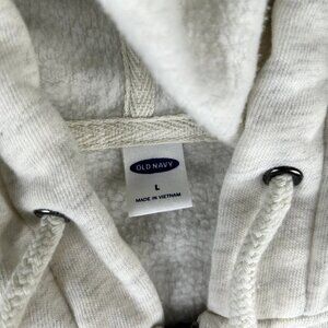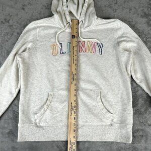 This Old Navy hoodie is perfect for any casual or travel occasion. The full zip up style features a drawstring closure and crew neck. The hoodie is made of a blended fabric type with a solid pattern in Ivory color. It has a regular fit and is available in Women's size Large. The hoodie features a Y2K character, Rainbow, and is perfect for any season - Winter, Fall, or Spring. The garment care is machine washable and it has pockets for convenience. This hoodie is a great addition to any wardrobe and is sure to spell out soft and cozy.