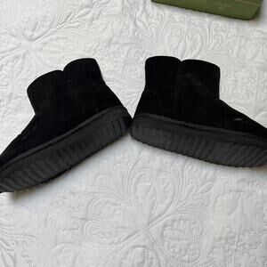 Old Navy faux suede and shearling lined boots. Solid black ankle booties with cozy fuzzy lining. Good condition, some minor overall wear. Size 12.