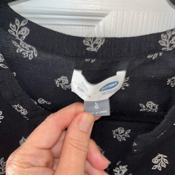Old Navy Gauze Style Long Sleeve Top with White Floral Design Large