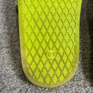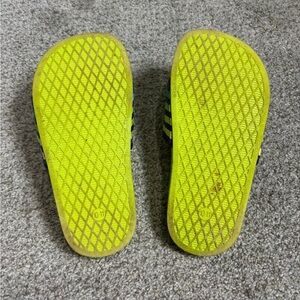 Old Navy Gender-Neutral Faux-Leather Striped Logo-Graphic Slides For Kids 10/11. Excellent preowned condition!