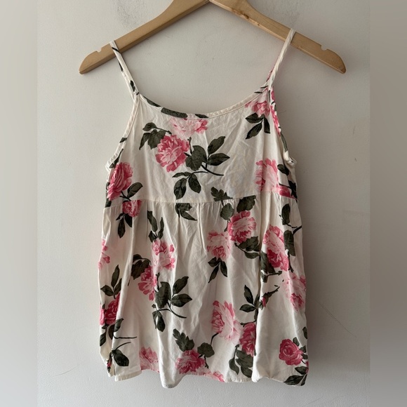 Old Navy Girls Adjustable Tie Back Cami White and Pink Rose Floral Print