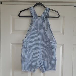 *NWT Old Navy blue and white striped denim shorts overalls.